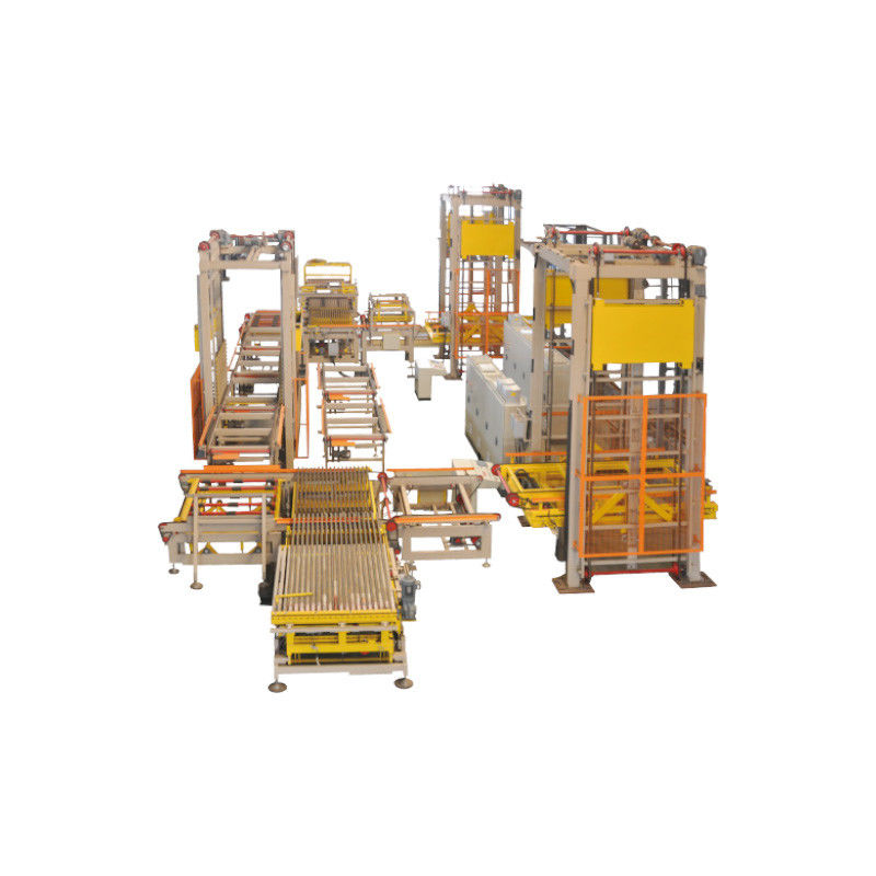 El proceso de ajuste de dos veces es crucial para la producción de materiales de pared de alta gama, que tiene tecnología avanzada, alto grado de automatización y buena estabilidad.corte de bloques, agrupación y carga de ladrillos verdes, descarga y agrupación de ladrillos secos, transporte, colocación y otros sistemas.que se conecta a cada unidad inteligente a través del bus de campo PROFIBUS y realiza la configuración automática de datos a través de un ordenador industrialEs adecuado para la producción de materiales de pared regulares y de alta gama.